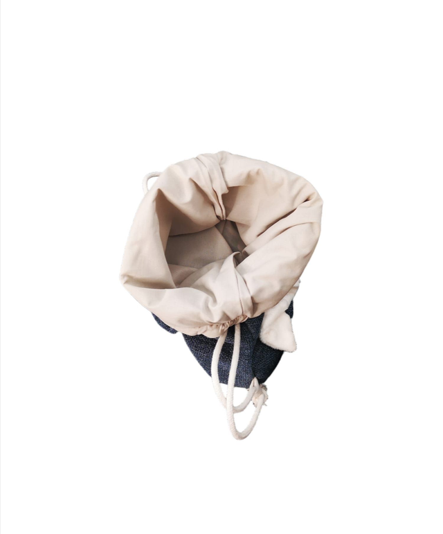 Matières: Tissu- simili cuir- corde 100% coton- doublé
