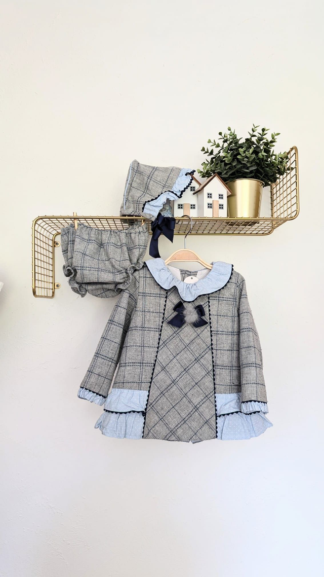 Robe à carreaux et pompon de marque Espagnole " Dolce Petit"